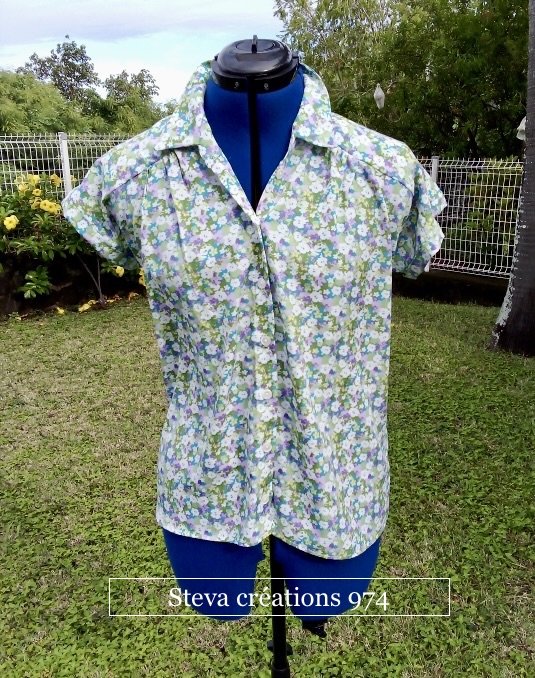 Il s’agit d’un top asymétrique avec des empiècements et une ouverture croisée en léger arrondie au dos . Réalisé dans un reste de coupon . J’avais calculé initialement ce reste après avoir cousu une robe , en prévision de ce » petit linge « . Comme nous sommes habitués à dire ou à entendre à la Réunion pour définir un habit ou un vêtement . L’idée étant de coudre un « sans manches « de type débardeur amélioré . J’ai voulu des empiècements devant et dos avec une longueur plus importante à l’avant . Parfait à porter avec un short par exemple .