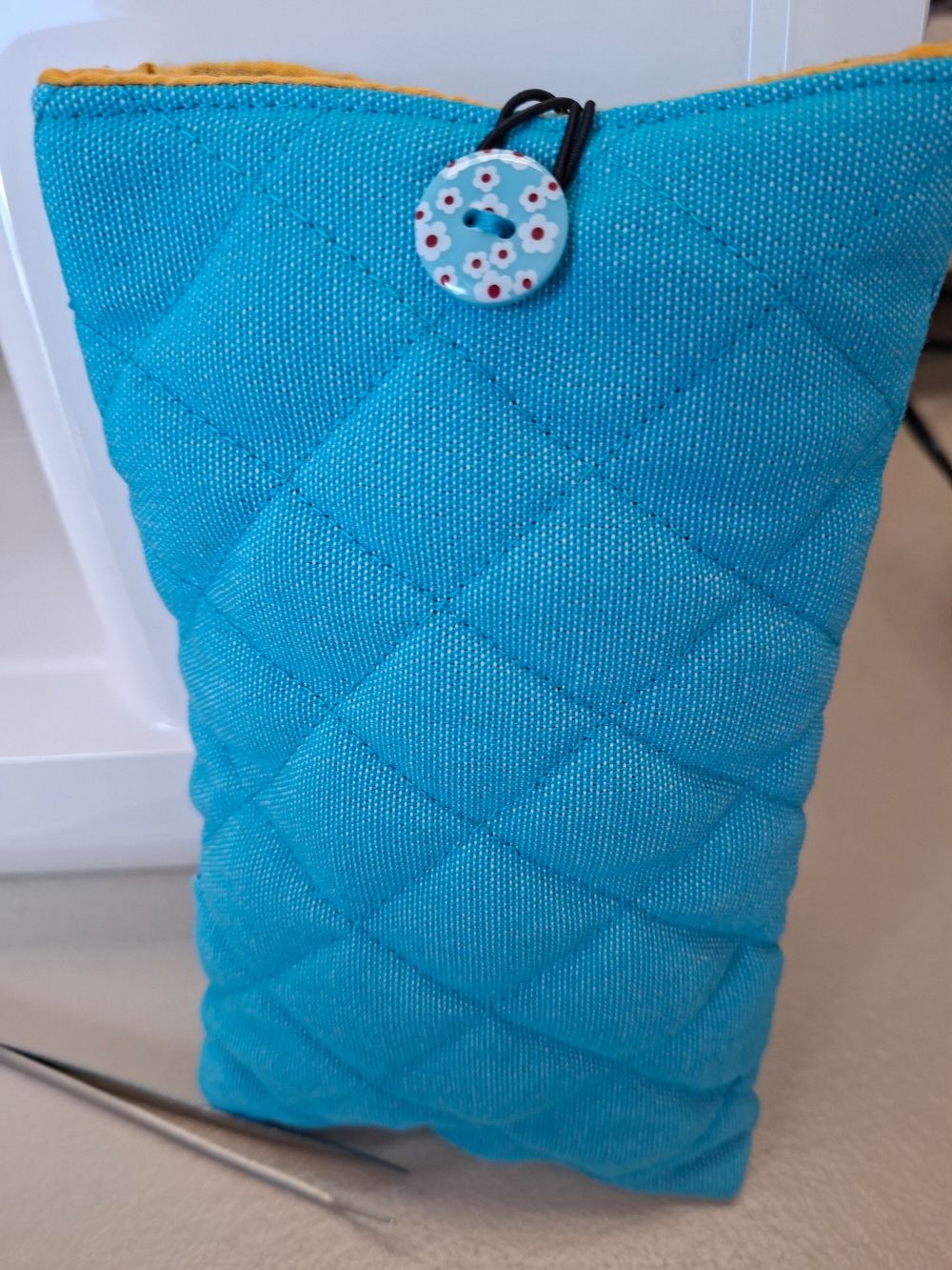 Confectionné sur mesures et matelassé par mes soins , cet étui apportera une protection supplémentaire à ton téléphone portable y compris dans ton sac à dos lors de tes randos en montagne .